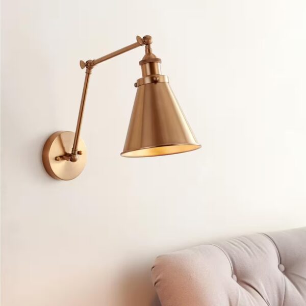 Add both beauty and function to your space with this brass gold adjustable wall sconce, a versatile lighting fixture designed to combine modern elegance with everyday convenience. With its sleek metal shade, durable arm, and polished brass gold finish, this sconce makes an eye-catching addition to any room while offering the practicality of directional lighting.